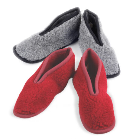 Die Puschen aus Wollflor Schafwolle – einfache, leichte und warme Hausschuhe ohne feste Sohle.